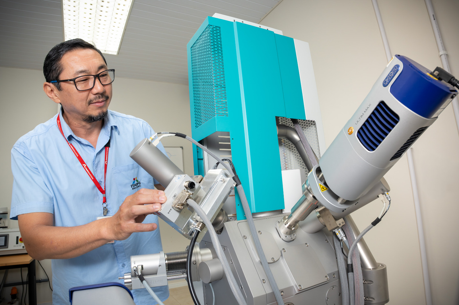 Um equipamento capaz de ampliar amostras em centenas de milhares de vezes e revelar estruturas na escala de nanômetros integra o conjunto de ferramentas utilizadas pela Itaipu Binacional no monitoramento do concreto e na segurança de sua barragem. Instalado na Divisão de Obras Civis (SOCC.DT), no Laboratório de Concreto, o Microscópio Eletrônico de Varredura (MEV) permite análises morfológicas e químicas de amostras estruturais e de materiais empregados na usina.